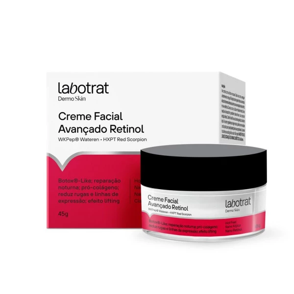 Revolucione sua pele com o Labotrat Dermo Skin Retinol Creme Botox-Like! Experimente a sensação de uma pele mais jovem e radiante em apenas algumas semanas. Formulado com um blend de ativos, o creme Botox-Like estimula a produção de colágeno, reduzindo visivelmente as rugas e linhas de expressão. Sinta a diferença em sua pele: mais firme, luminosa e com uma textura aveludada. Adquira agora e descubra o segredo de uma pele impecável!