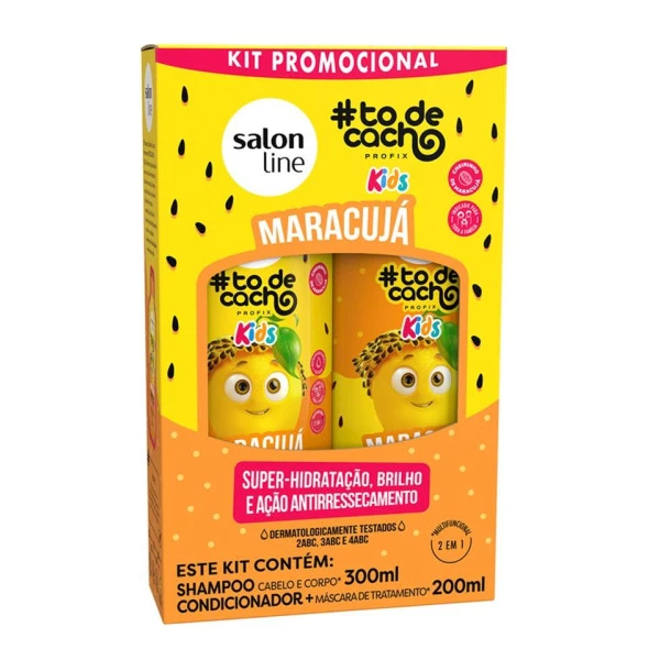 O Kit #todecacho Kids 2 em 1 Hidratante Maracujá é composto pelo Shampoo, para cabelo e corpo, que promove limpeza sem ressecamento, hidratação e maciez e o Condicionador que, além de desembaraçar os fios, também proporciona uma super-hidratação, brilho e ação antirressecamento, já que também pode ser usado como Máscara de Tratamento. Produto indicado para toda família!